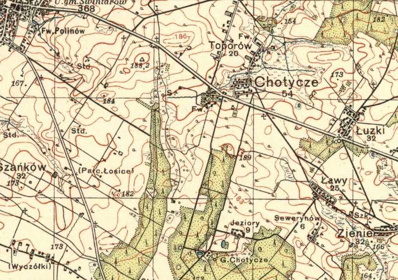 – Wykorzystano fragment mapy WIG PAS 40 SŁUP 35 ŁOSICE wyd. 1937 rok.