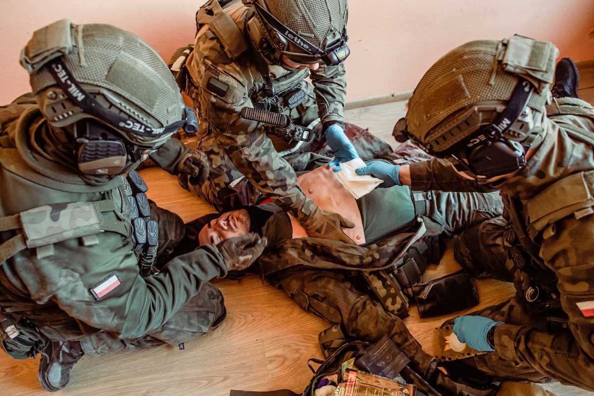 Z kolei terytorialsi z Zamościa odbyli kolejne już w tym roku szkolenie z ratownictwa taktycznego (TCCC) połączone z tzw. „czarną taktyką”, czyli działaniami bojowymi w obszarze zurbanizowanym. Pod okiem doświadczonych instruktorów ratownictwa doskonalili techniki udzielania pomocy medycznej osobom rannym oraz ewakuacji w warunkach odzwierciedlających współczesne pole walki. Ćwiczenia odbyły się we współdziałaniu z funkcjonariuszami Wydziału Zabezpieczenia Działań Nadbużańskiego Oddziału Straży Granicznej. Cennym aspektem tego szkolenia była obustronna wymiana doświadczeń.