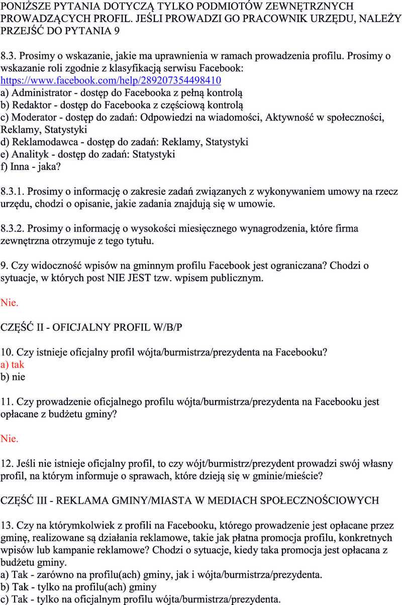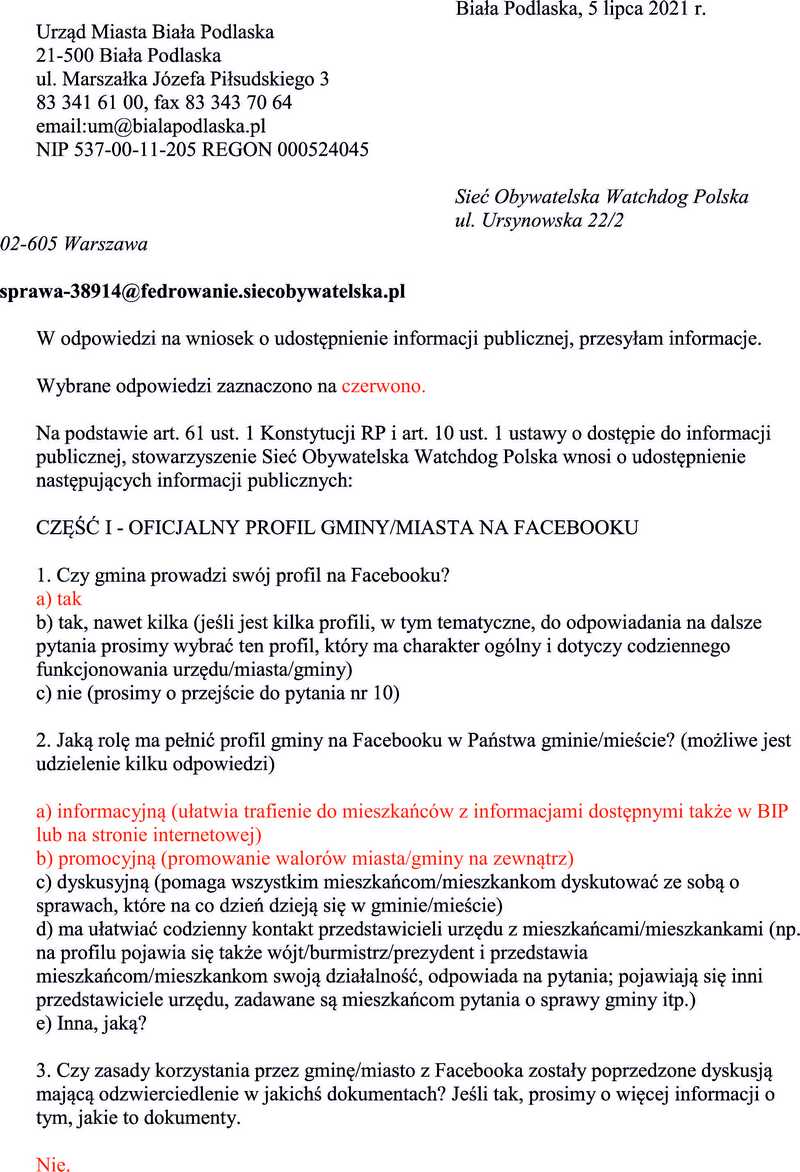 Jedną z organizacji wypracowujących doktrynę czy też rodzaj kodeksu etyki jest Sieć Obywatelska Watchdog Polska. Watchdog w ubiegłym roku również odpytywał bialski samorząd o kwestie związane z samorządowymi profilami. Tam również odpowiedziano twierdząco na pytanie o funkcjonowanie prezydenckiego profilu. Jednak i w tym przypadku nie podano co to za profil.