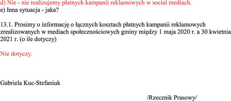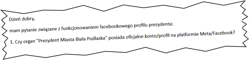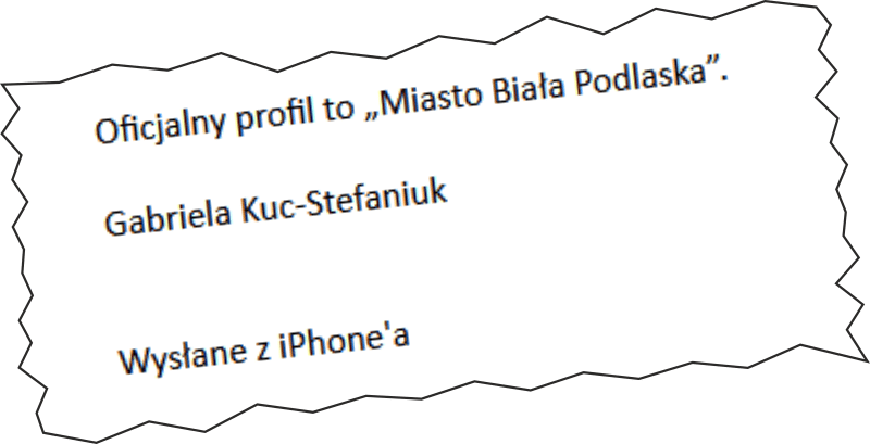 W tym celu 06 stycznia b.r. (nie było orszaku to coś trzeba było robić 😉 ) wysłałem pytanie do Rzecznika Prasowego Urzędu Miasta Biała Podlaska Gabrieli Kuc-Stefaniuk. Oczywiście na służbowego maila: gabriela.kuc-stefaniuk@bialapodlaska.pl.