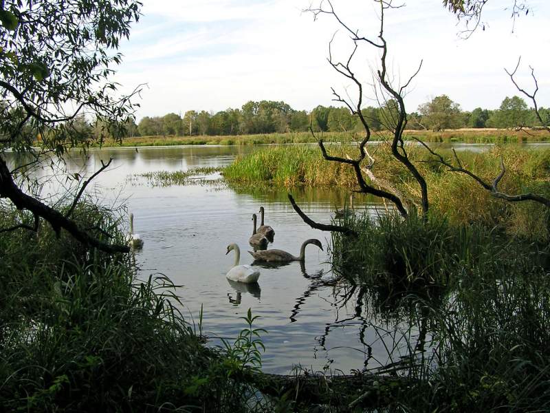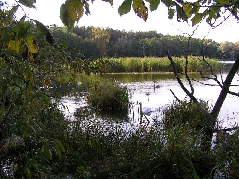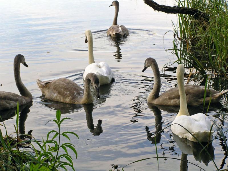 W porze letniej na jeziorku można oglądać wiele gatunków ptactwa wodnego. A wśród nich znane każdemu dziecku z baśni o „Brzydkim Kaczątku” łabędzie, które są tu stałymi bywalcami. Łabędź niemy, którego widzimy na zdjęciach uwielbia właśnie takie stojące wody, które zapewniają im dostatek pożywienia. A ich szaro-popielate młode mogą czuć się bezpiecznie w tej oazie ciszy i spokoju.