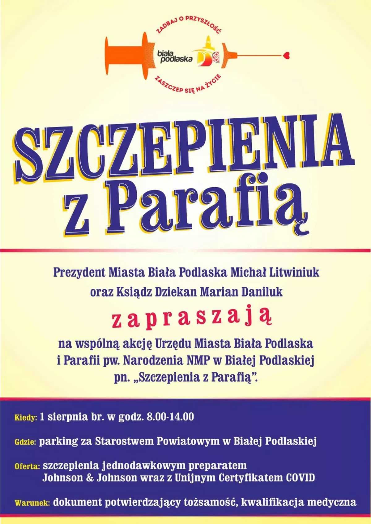 Na plakatach zamieszczonych w internecie, Urząd Miasta Biała Podlaska przekonuje jakoby wspólnie z Parafią pw. Narodzenia NMP w Białej Podlaskiej prowadzili akcję „Szczepienia z Parafią!”: