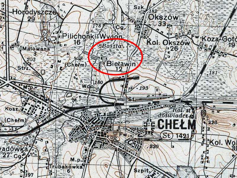 – Wykorzystano fragment mapy Wojskowego Instytutu Geograficznego PAS 44 SŁUP 37 Chełm. Wyd. 1931 r.