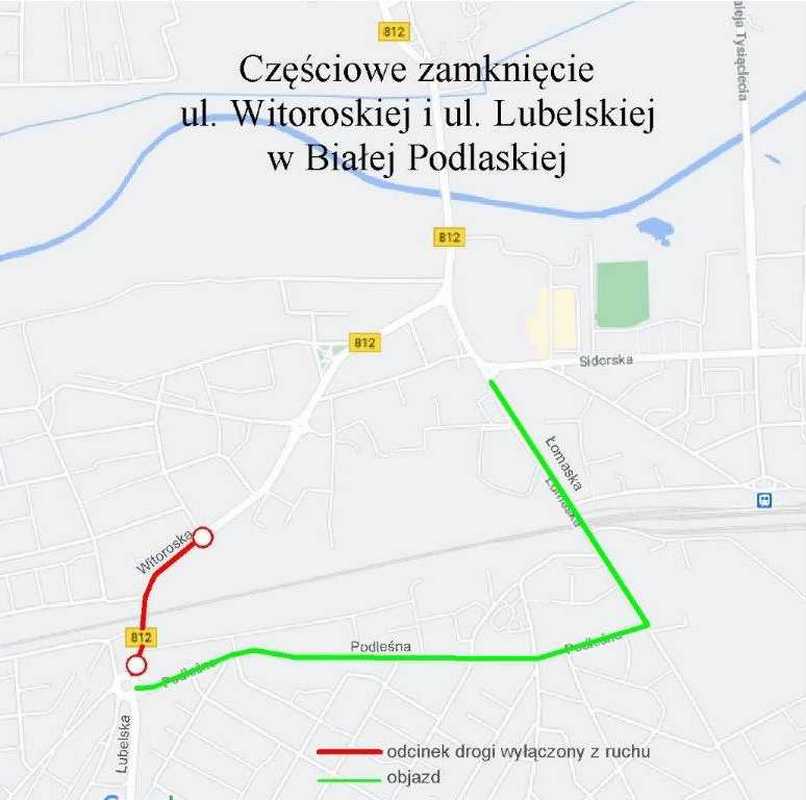 Objazd zamkniętego odcinka będzie odbywał się ulicami Podleśną i Łomaską.